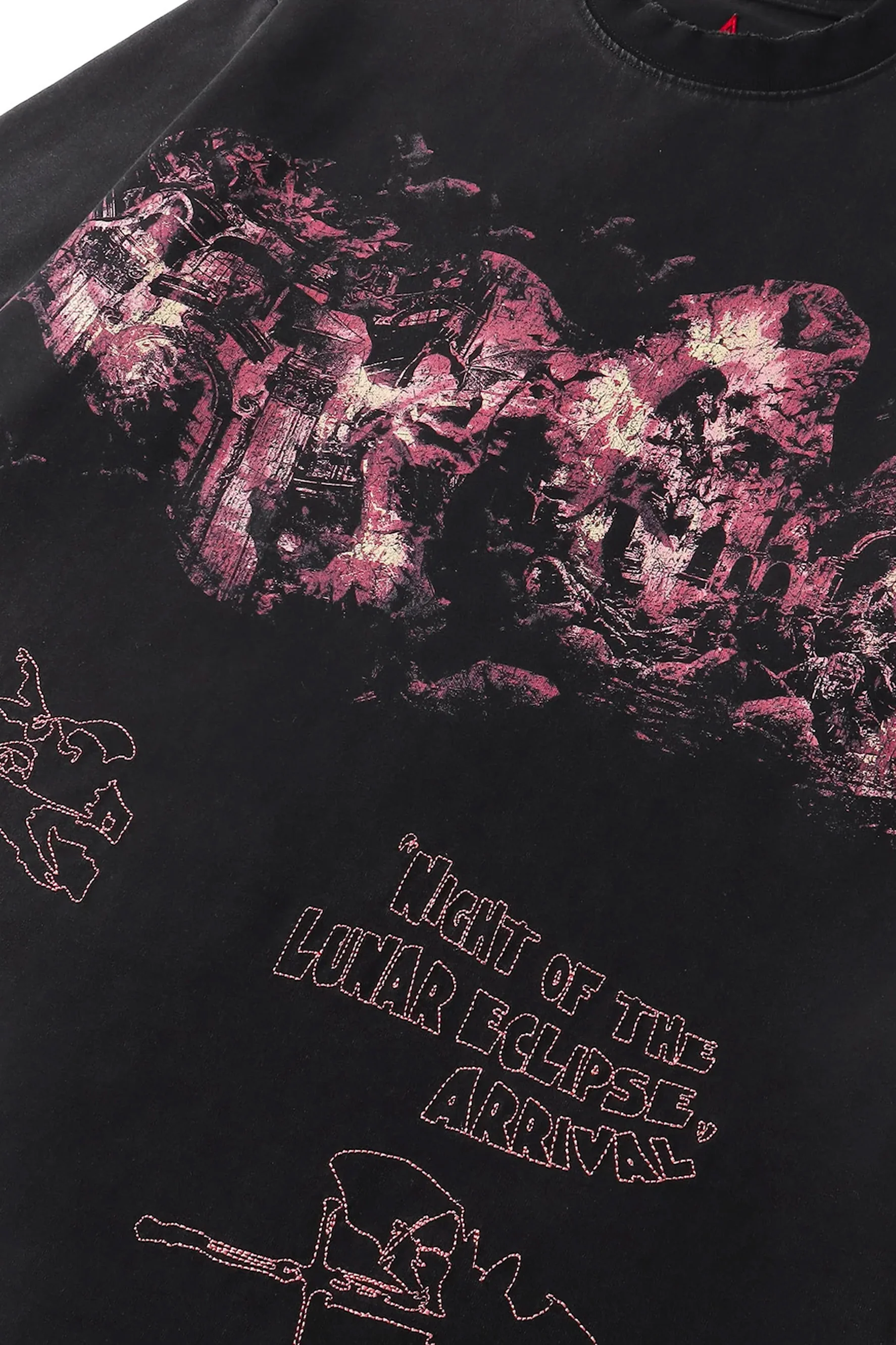 Experience the premium quality of our TBHNP BLOOD MOON TEE made with organic cotton. The intricate rice grain embroidery adds a touch of elegance, while the unique color spraying process gives it a one-of-a-kind look. With a subtle distressed effect, this tee is perfect for those who appreciate refined style.