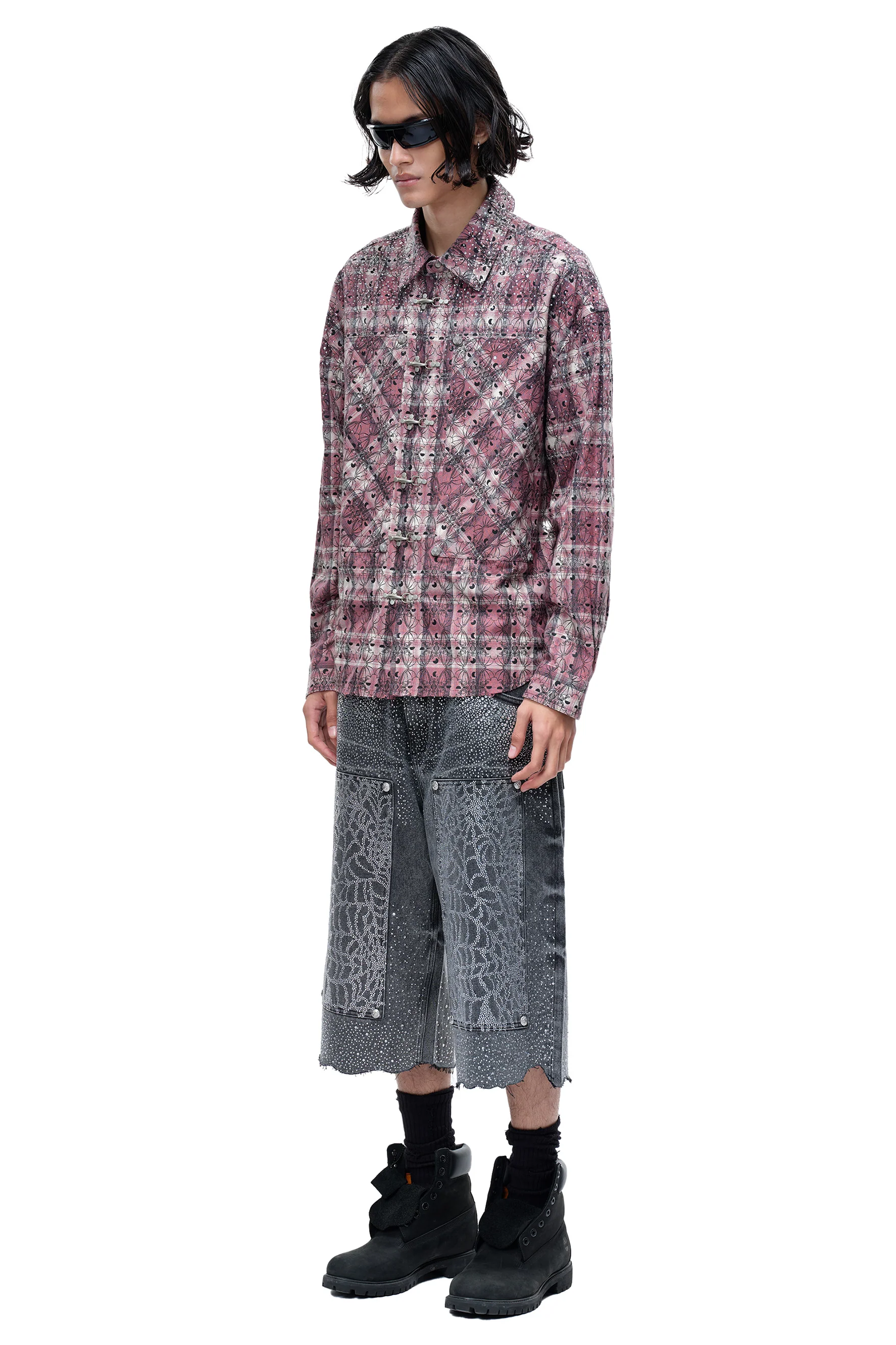 This organic cotton shirt features a bold rhinestone design on the front and back, adding a touch of glamour to its classic plaid pattern. With a convenient buckle closure, this shirt not only looks great, but also provides a comfortable and practical wear. Elevate your style with TBHNP's Rhinestone Shirt.