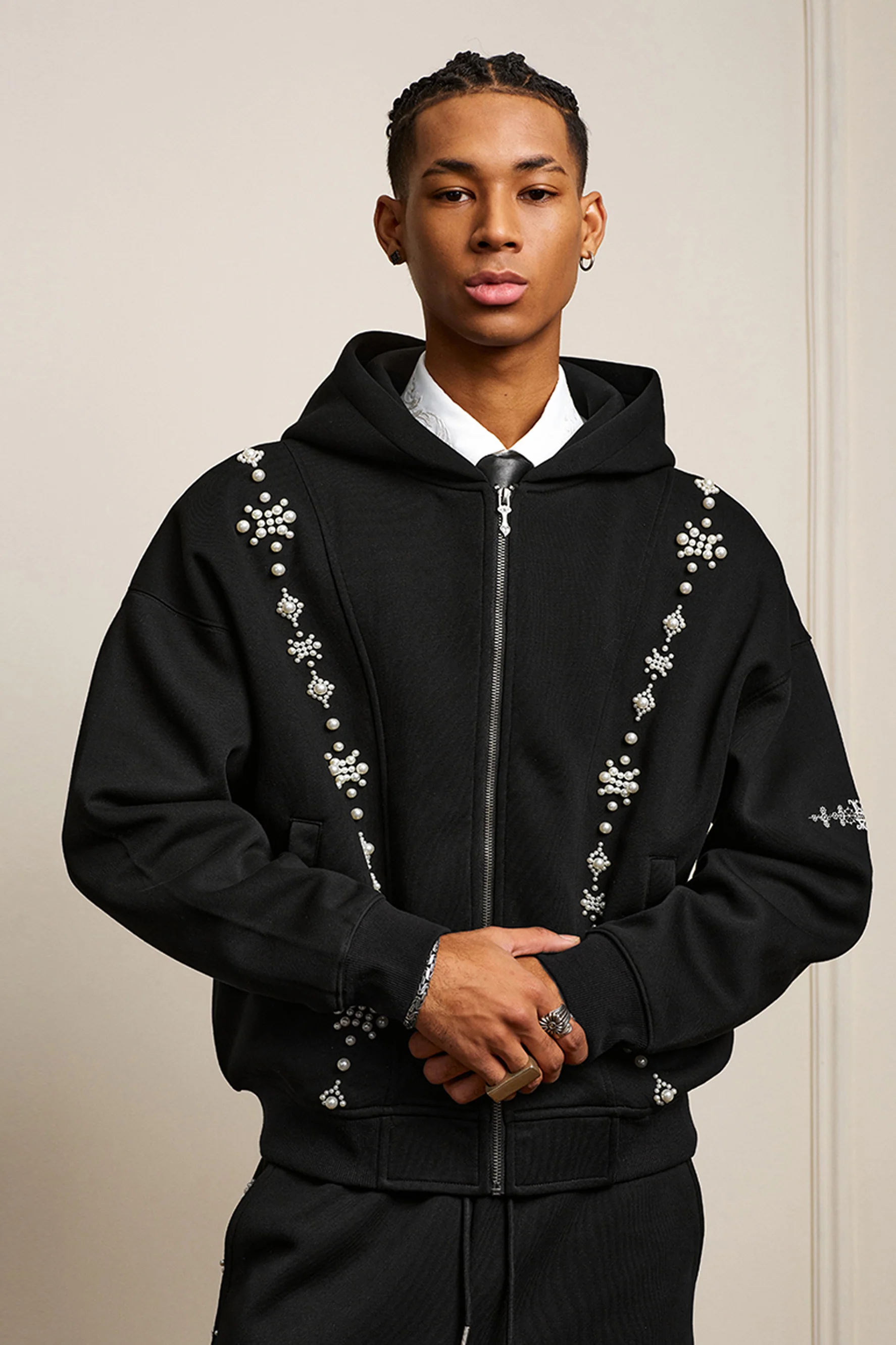 The YADCREW ZIP UP PEARL HOODIE combines premium comfort with refined design. Crafted from a 400g organic cotton and polyester blend, this hoodie delivers exceptional durability while maintaining breathability for year-round wear. The distinctive dual pearl zip pulls add an elegant touch, elevating the piece beyond standard casual wear. The substantial fabric weight ensures lasting shape retention and superior insulation, making it an investment-worthy staple for discerning wardrobes. Perfect for layering or standalone wear, this hoodie balances sustainability with contemporary style.